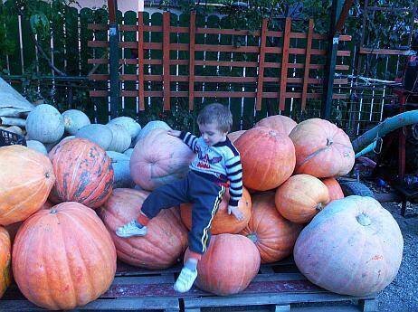 În imaginile primite de la o familie din Buzău, băiețelul familiei este un pitic printre ”monștri” portocalii răsturnați în curtea gospodăriei. ”Este cea mai bogată recoltă pe care am avut-o până acum, dar nu ne așteptam să atingem așa un record. Din câte știm, nu sunt alți dovleci mai mari în toată România”, ne-a spus Alexandru, fermierul care a ajuns să aibă roade uriașe chiar și fără a folosi artificii pentru stimularea creșterii lor.