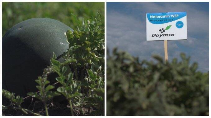 Pepenii lui Andrei Boitoș le iau ochii clienților, care se întorc mulțumiți și mai cumpără. Secretul fermierului este, pe lângă Naturamin WSP, și folosirea altor produse din gama Daymsa. Folitex și Naturfruit ajută la coacere și la atingerea acelui roșu de care ți-e mai mare dragul când tai pepenele. Raiza Mix poate fi folosit cu încredere la transplantare, pentru că ajută pepenele să formeze o masă radiculară excelentă.