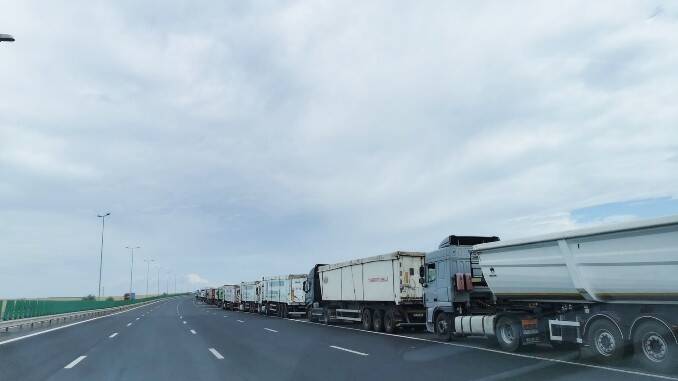 Șoferi de autocamioane, nemulțumiți la poarta Portului Constanța. Este coadă de TIR-uri pe Autostrada A4, zona localității Agigea. Zeci de autocamioane încărcate cu cereale stau la rând pentru a intra în Portul Constanța, la descărcare, potrivit ziuaconstanta.ro.