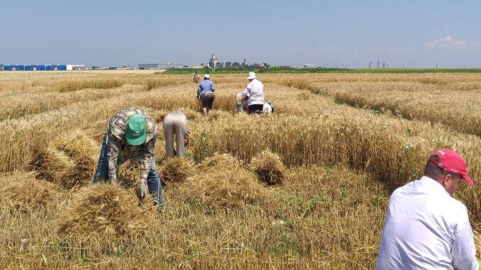 Angajații Stațiunii de Cercetare Albota recoltează și strâng manual grâul pentru ameliorare