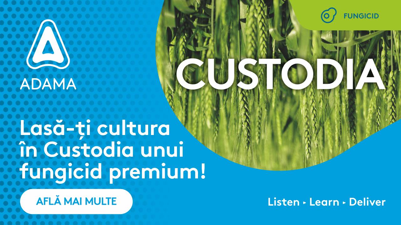 CUSTODIA este răspunsul ADAMA ce vine în întâmpinarea nevoilor fermierilor, la începutul acestui an. Fungicidul CUSTODIA a beneficiat de extinderea domeniului de utilizare la culturile de cereale păioase, produs cunoscut până acum pentru protecția eficientă pe care o aduce culturii de rapiță în fenofaza de înflorit.
