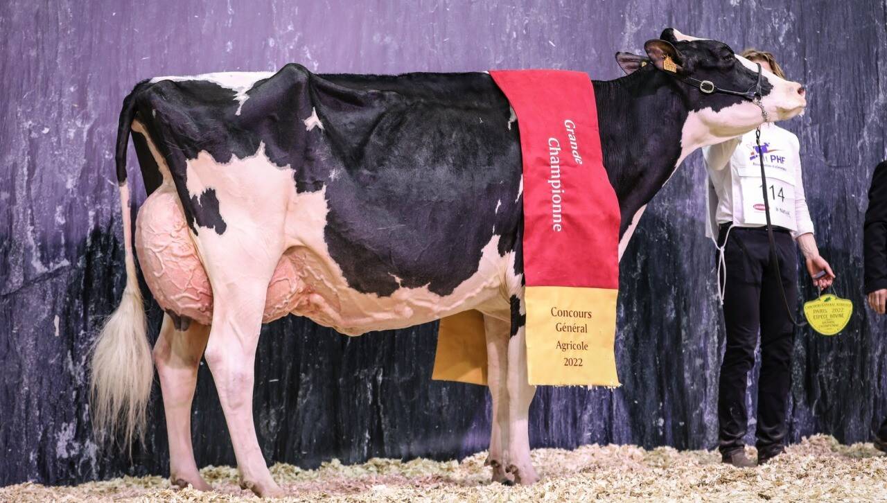 „Cea mai mare mândrie a noastră este că provine dintr-o linie aleasă de noi, prin împerecheri selecționate pe parcursul a nouă generații, dintr-o vacă luată din ferma tatălui meu, când m-am mutat în 1998”, rezumă crescătorul istoricul campioanei. „Este un job pe termen lung”, continuă Mathilde, pasionată și ea de genetică și care și-a cunoscut chiar soțul la un concurs de profil.