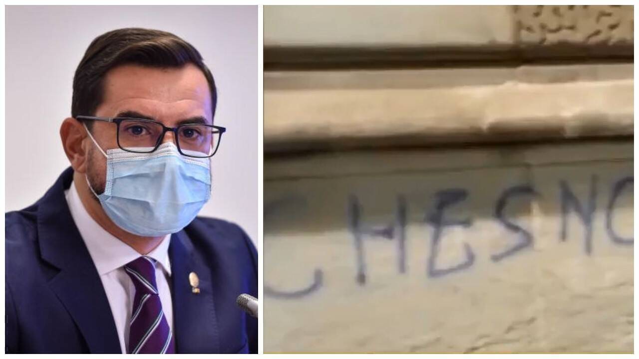 Gardul Ministerului Agriculturii a fost vandalizat, iar mesajul scris cu spray este un apel la ministrul Adrian Chesnoiu să oprească exportul de cereale și să grăbească investițiile în sistemele de irigații.