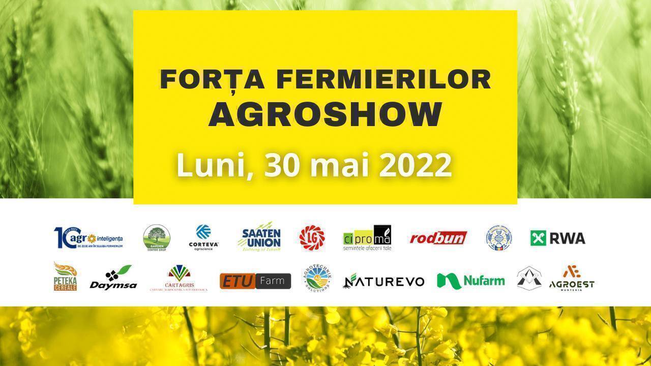 În ziua de luni, 30 mai 2022, la 20 de kilometri de Capitală, în județul Giurgiu, într-una din cele mai performante ferme din România, această suită de manifestări – Forța Fermierilor AGROSHOW și, imediat după, Congresul Fermierilor 2022 vor ține capul de afiș al evenimentelor din acest an dedicate informării și susținerii agricultorilor.