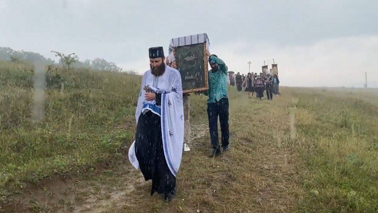 O ploaie torențială s-a pornit chiar în timpul slujbei anti-secetă de la o mănăstire din Bacău