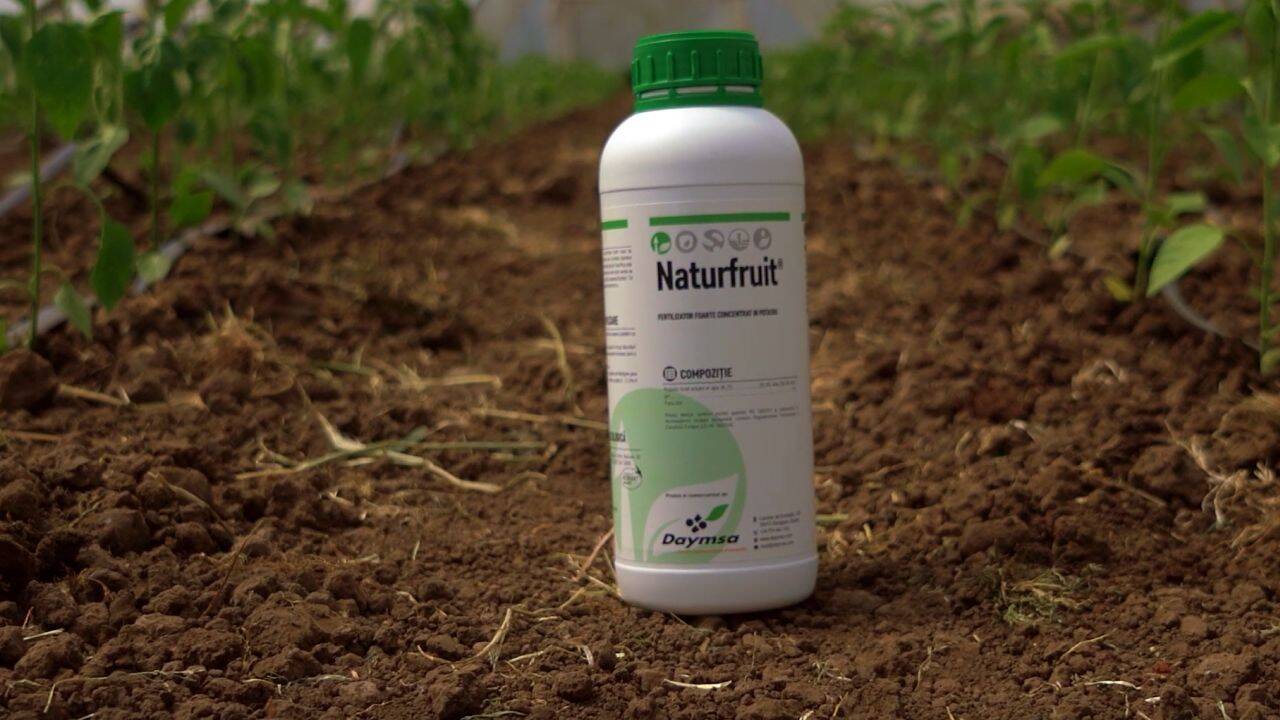 ”Naturfruit se poate administra imediat după primul etaj de fructificare la legumele care fructifică pe mai multe etaje, începem cu o doză mai mică, de 30-40 ml / 10 l de apă. Putem crește doza până la 80-100 ml din acest produs, când ne apropiem de recoltare. Este un produs care nu arde vegetativ, datorită conținutului de oxid de potasiu. Este un produs liber de clor”, a explicat Joaquin Gonzales, reprezentant Daymsa.