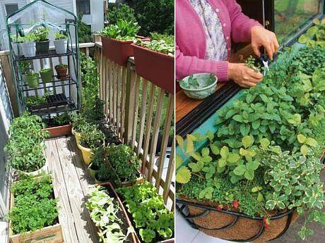 În ghivece sau lădițe ce permit un spațiu mai mare de creștere a plantelor se pot planta salata verde, spanac sau rucola. Ușor de îngrijit sunt și căpșunii, ce trebuie crescuți la nivelul balustradei sau pe pervaz pentru a asigura suficientă lumină pentru coacerea fructelor (condiție obligatorie pentru toate plantele, de altfel).