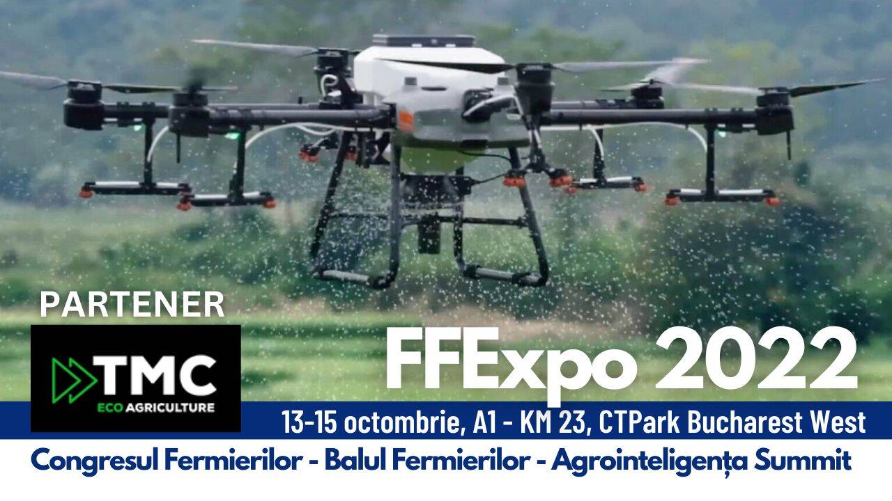 TMC EcoAgriculture – compania specializată în erbicidări și tratamente aplicate cu drona va participa la târgul național dedicat fermei de familie – FFExpo – evenimentul toamnei organizat de Asociația Forța Fermierilor și Grupul Agrointeligența, în perioada 13-15 octombrie, în parcul industrial CTPark Bucharest West.