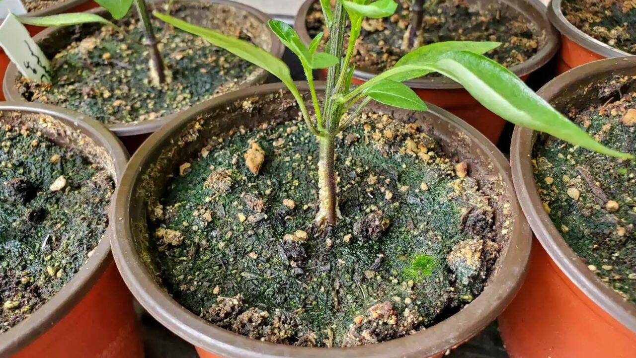 Stratul verde la răsaduri poate apărea încă de când acestea sunt foarte mici, imediat după răsărire. Pe măsură ce răsadurile cresc și vor utiliza mai multă apă, șansele sunt ca algele să dispară singure.