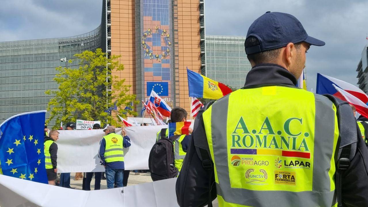 A început protestul fermierilor la Bruxelles! O delegație de aproape 50 de producători agricoli din România, membri ai organizațiilor ce formează Alianța pentru Agricultură și Cooperare, protestează în fața Comisiei Europene alături de colegi fermieri din alte cinci țări: Polonia, Ungaria, Cehia, Bulgaria şi Slovacia. Protestul a fost autorizat pentru participarea a 200 de persoane din toate cele șase țări.