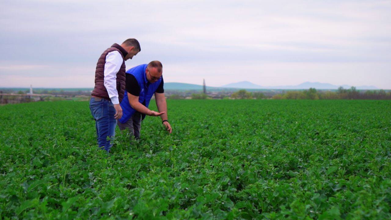 ”Toprex pe care l-am aplicat la începutul lui noiembrie, mă ajută foarte mult pentru ca planta să intre foarte bine în iarnă. De ce? Pentru că are regulator de creștere, care te ajută, în primul rând, ca rădăcina să se dezvolte bine, că pe mine aia mă interesează la rapiță, rădăcina, nu mă intereseză frunzele, bine, ele trebuie să fie sănătoase, frumoase, dar rădăcina este baza. Din rădăcină fac eu producția de anul viitor și de aia intervin cu Toprex, unde am fungicidul și am regulatorul de creștere. Și am rezolvat problema”, a declarat fermierul.