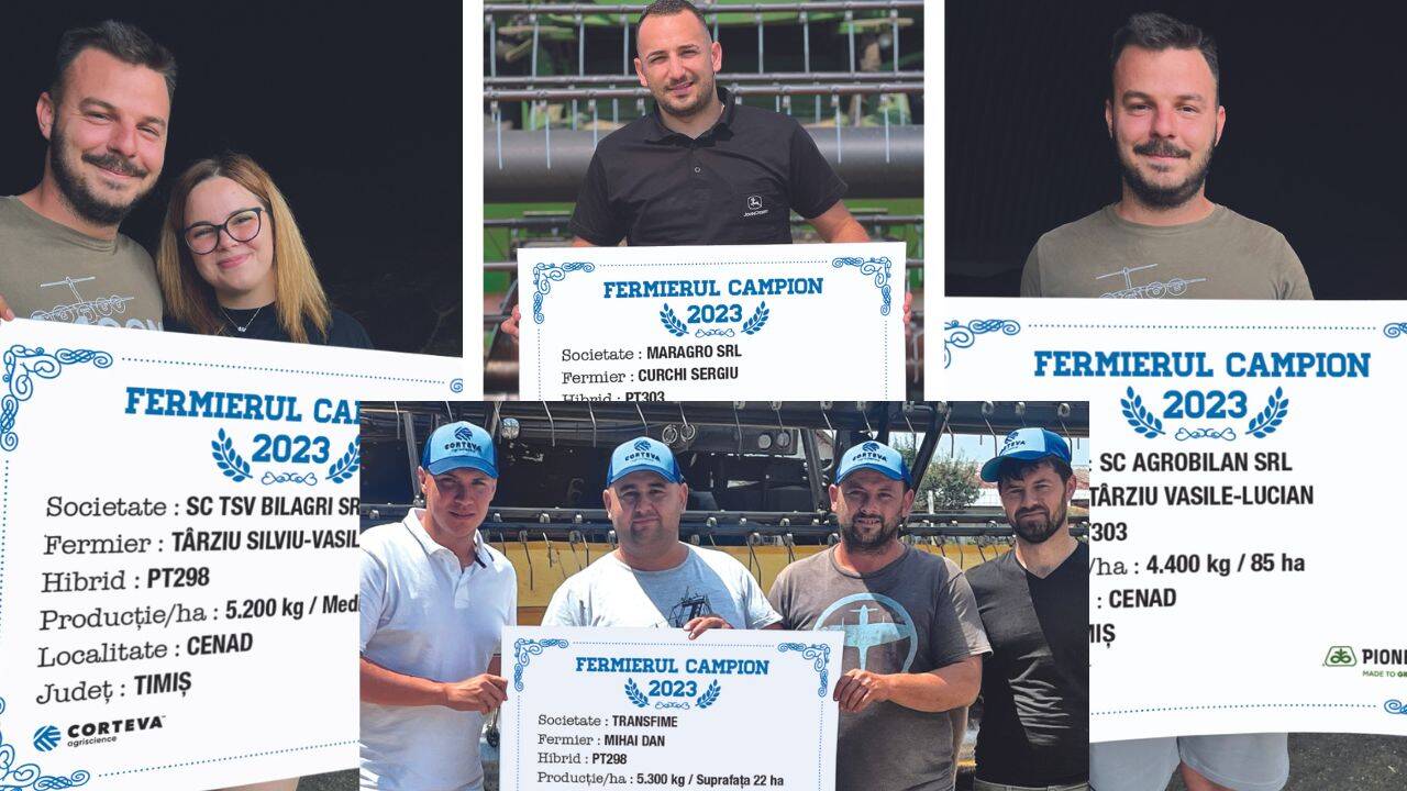 Primul fermier campion din județul Timiș este Mihai Dan, societatea Transfime. Acesta își desfășoară activitatea în localitatea Fibiș, lucrează 800 ha și a obținut o producție de 5.300 kg/ha cu hibridul PT298/Agile.