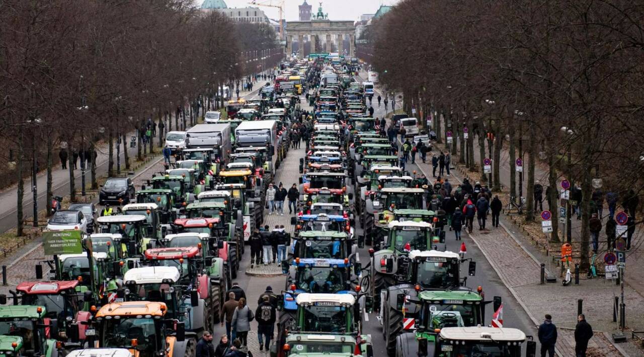 După ce Guvernul Federal al Germaniei a anunțat că va elimina subvențiile pe motorina agricolă, precum și scutirile de taxe pentru vehiculele agricole, fermierii din toată țara au avut un răspuns puternic, luându-și tractoarele și demonstrând în capitală. Conform datelor poliției germane, la protest ar fi fost prezente 1.500 de tractoare.