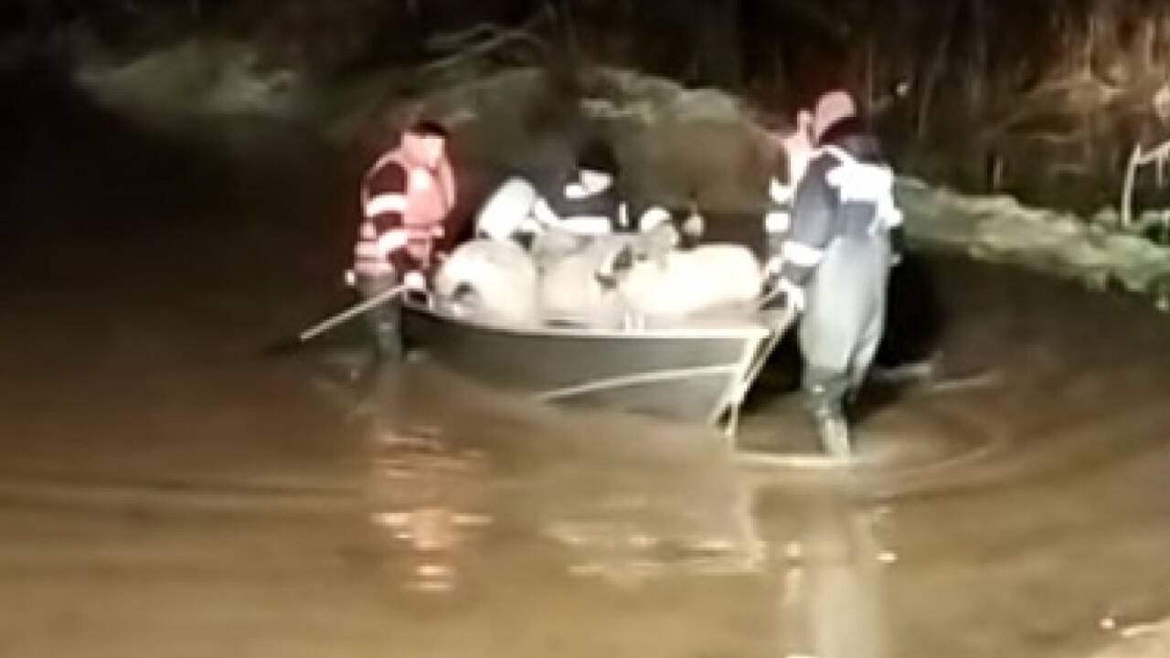 Operaţiune de salvarea a unei turme de oi, blocate într-un saivan inundat în urma precipitațiilor abundente. Pompierii au intervenit chiar la primele ore ale dimineții pentru salvarea animalelor.