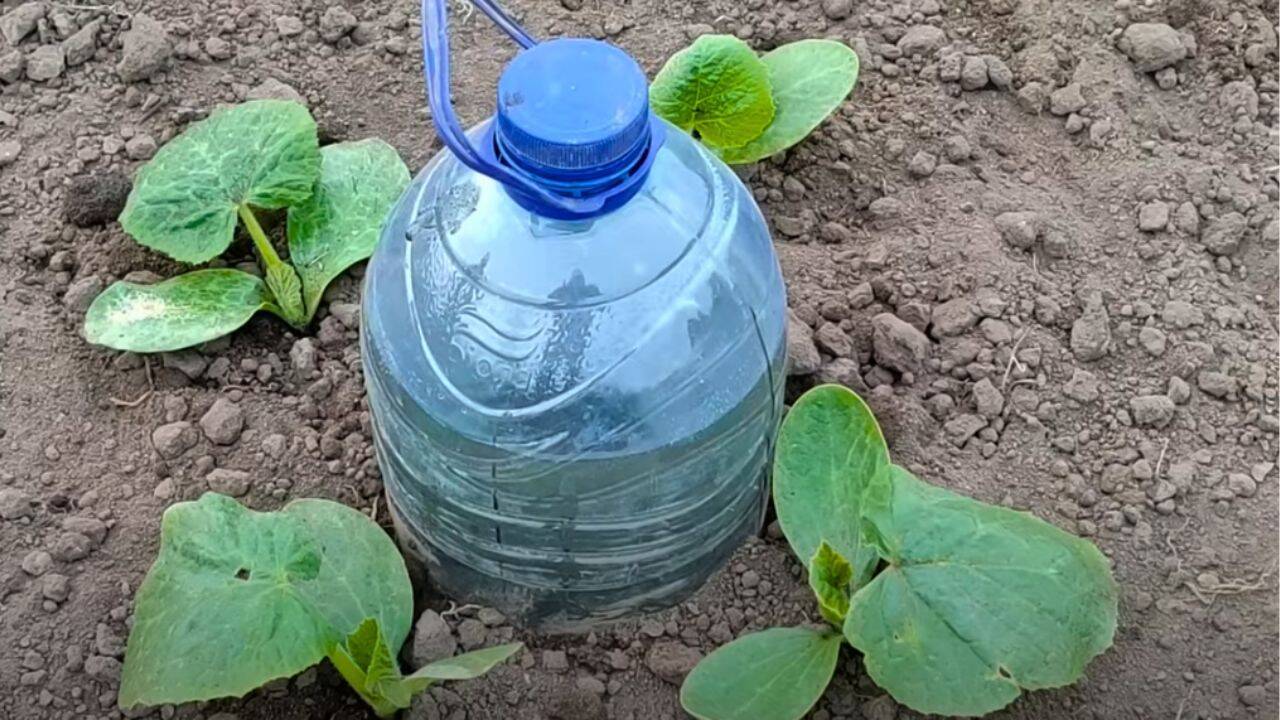 În jurul acestui sistem confecționat, se pot plasa plantele, pe o suprafață de 1-2 metri pătrați. Se pot utiliza semințe de castraveți, roșii, pepeni, dovlecei etc, care se vor planta la o distanță de 3-4 cm de fiecare linie a bidonului, fiind locul în care va avea loc picurarea.