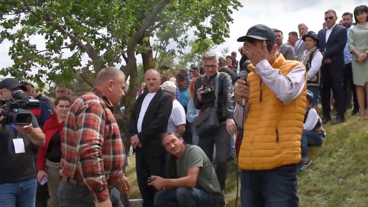 ”Asta este mândria noastră, a fermierilor, ca să-ți prezinți munca de 25 de ani, de 20 de ani, vrem să fim alături de fermierul care a fost un om muncitor și a ajuns la un efectiv de 70 de animale și a rămas fără niciuna. Noi, din cadrul asociației de fermieri, eu familia Coșoreanu cu ferma pe care o dețin în dăruiesc o vițică, asta alb cu negru. Coșoreanu Ionel îi dă o junică fătată de 4 luni, Croitoru Cristi o junică și Arsanie Lulu o junică”, a anunțat unul dintre fermierii care au donat văcuțele.