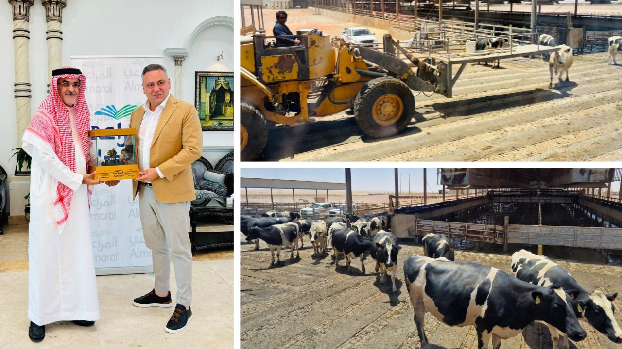 În mijlocul deșertului, la temperaturi ce depășesc aproape zilnic 45 de grade Celsius, este locul în care se află una dintre cele mai mari și mai impresionante exploatații de produse lactate din lume. Ferma din Arabia Saudită a fost vizitată de o delegație a Ministerului Agriculturii condusă de ministrul Florin Barbu, alături de secretarul de stat Sorin Moise. Cu acest prilej, cei doi reprezentanți MADR s-au deplasat și la sediul companiei Almarai, una dintre cele mai mari și mai importante din Orientul Mijlociu și care deține nu doar ferme de vaci de lapte, dar și unități de procesare în care sunt realizate o varietate de produse, inclusiv lactate, sucuri și patiserie.