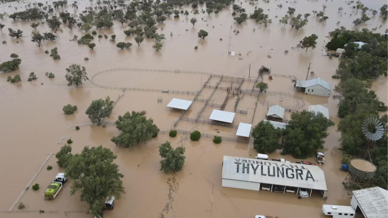 În ultimele săptămâni, ploile neobișnuit de abundente au făcut ca râurile din statul estic, în mod normal uscat, să-și reverse malurile. 500.000 km² au fost inundați, a fost cea mai gravă inundație din ultimii 50 de ani. Unele ferme și-au pierdut aproape toate animalele, potrivit grupului de interese agricole AgForce, citat de Agrarheute.
