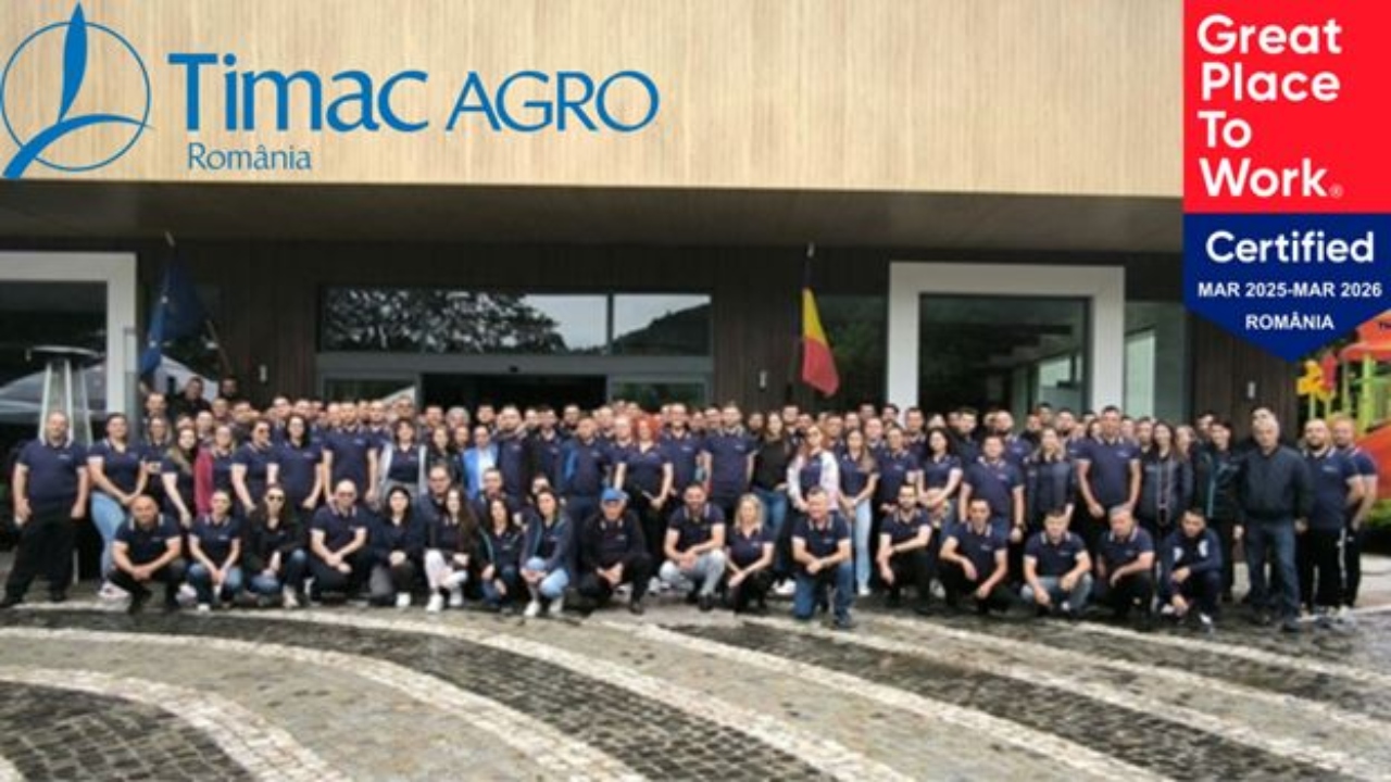 TIMAC AGRO România a anunțat că a obținut certificarea Great Place to Work, una dintre cele mai prestigioase recunoasteri internaționale acordate organizațiilor care promovează excelența în cultura organizațională și satisfacția angajaților.