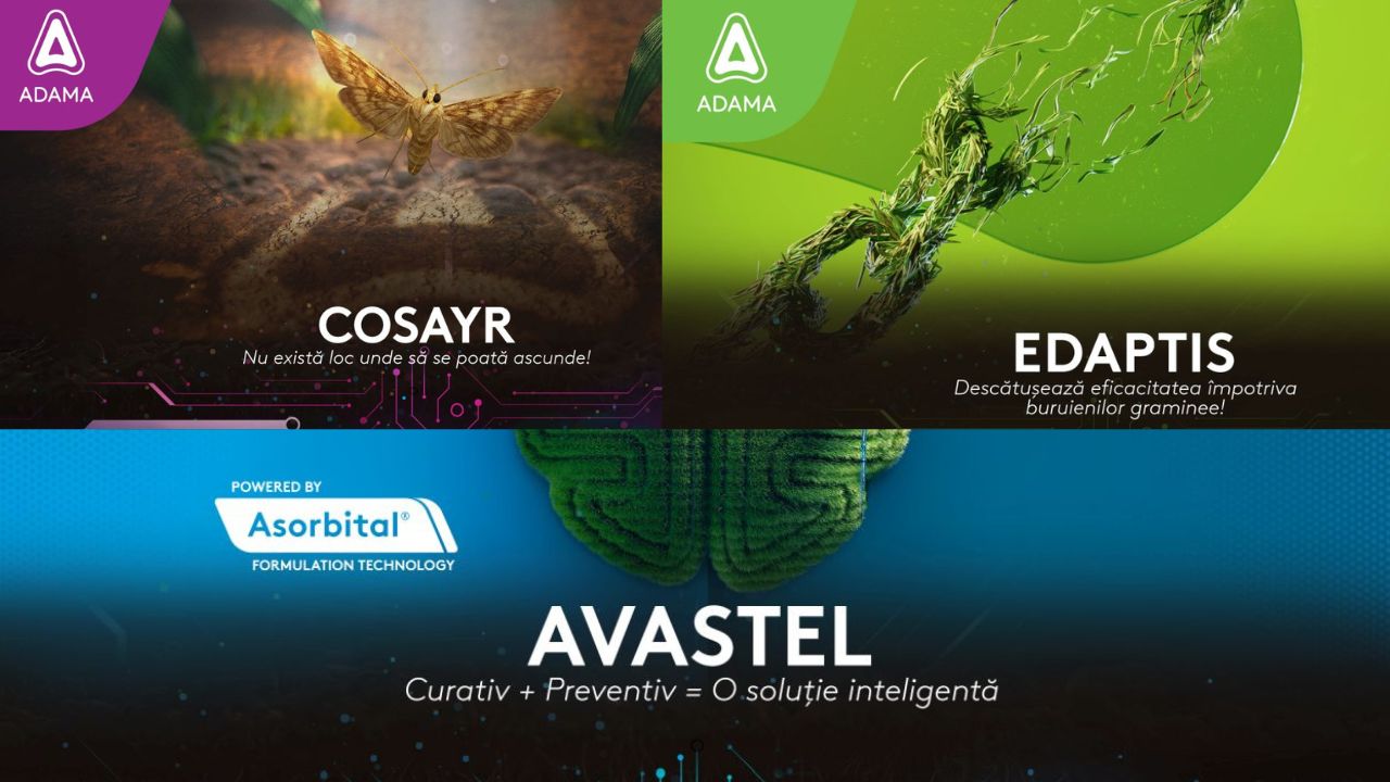 ADAMA, lider mondial în industria produselor pentru protecția plantelor, anunță lansarea pe piața din România a noilor produse EDAPTIS®, AVASTEL® și COSAYR®, soluții moderne și eficiente care răspund unor provocări agronomice majore precum controlul buruienilor graminee dificil de combătut, combaterea bolilor la cereale și gestionarea insectelor dăunătoare.