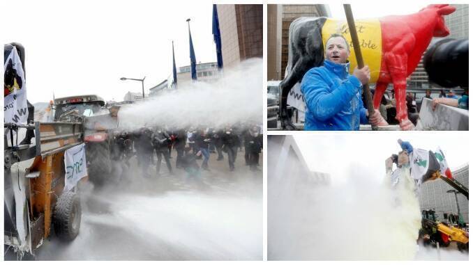 IMAGINI INCREDIBILE de la PROTESTUL FERMIERILOR: A NINS CU LAPTE PRAF LA BRUXELLES! – GALERIE FOTO