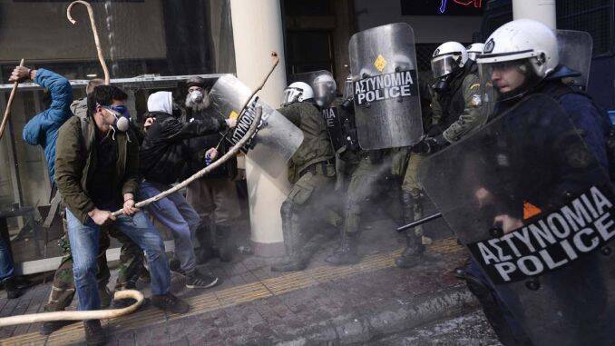 Fermierii greci continuă protestele care ieri, miercuri, 8 martie, au degenerat în adevărată lupte de stradă între manifestanți și forțele de ordine. Imaginile postate pe rețelele de socializare, mai ales pe Twitter arată că fermierii – majoritatea veniți din Insula Creta, au reacționat dur în momentul în care, ajunși la Ministerul Agriculturii, li s-a refuzat dialogul cu oficialii statului și, în schimb, au fost trimise forțe de ordine să ”spargă” protestul.