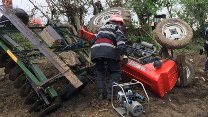 Aflat la volanul unui tractor cu care circula pe Strada Târgului, din Orăştie, în momentul în care a efectuat un viraj la stânga, utilajul s-a răsturnat şanţul din dreapta sensului său de mers, iar şoferul a fost surprins sub tractor.