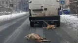Porci legați și târâți după mașină. Ce amendă a primit șoferul din partea Poliției