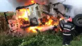 CAMION CU GRÂU, ÎN FLĂCĂRI! Un șofer A MURIT ÎN ACCIDENT, al doilea este GRAV RĂNIT!