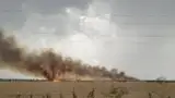 Incendiu puternic într-un lan de grâu. Focul a pornit de la un fulger