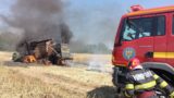O combină a luat foc în timp ce treiera grâul. Flăcările au pornit de la un scurtcircuit