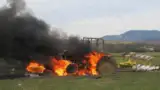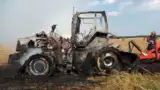 Tractor ars în totalitate după ce a luat foc pe câmp