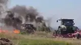 Utilaje agricole, în flăcări pe câmp. Pagube uriașe pentru fermieri