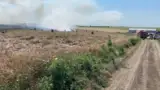 Cultură de grâu, arsă în întregime! Flăcările ar fi pornit de la o scânteie la utilajele agricole care recoltau!